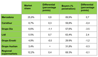 In this context, Mercadona is strengthening its position as the 2019 leader of Spanish FMCG achieving a 0.6 point increase in market share which means that they have 25.8% of the national market. The retailer is gaining ground in regions where it previously had less prominence such as Galicia and the Basque Country. It is also once more strengthening its commitment to own-brand products and to developing new products in the take-away food sector.