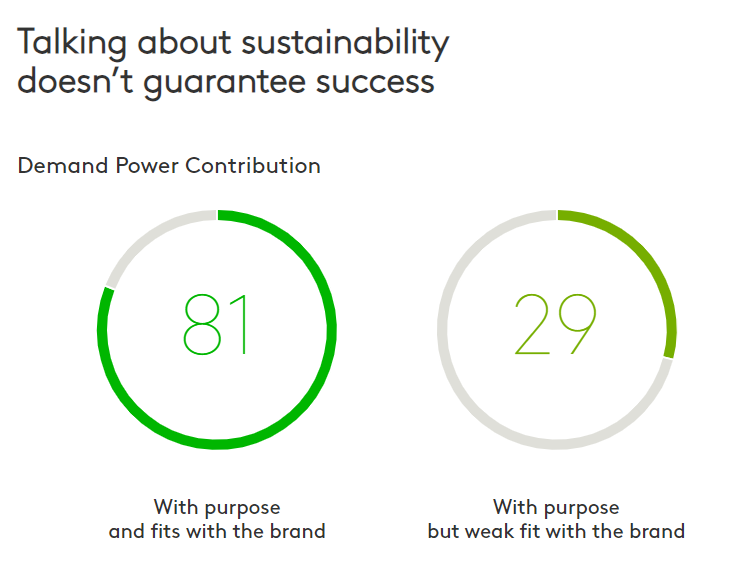 When we look at the Global Link database, ads that have a purpose message that also fits the brand, have a much stronger contribution to building brand equity, than purpose ads with a weak brand fit. Getting the creative execution basics right, like enjoyability. involvement, being well branded etc, are also fundamental. A dull execution wouldn't be attention grabbing, just because it carries a sustainability message.