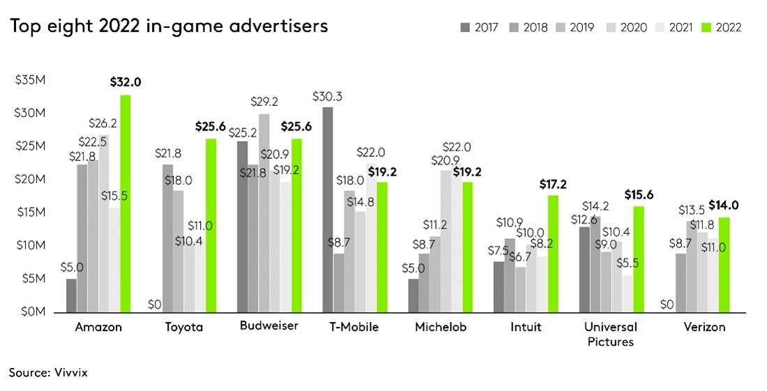 The Automotive industry, which has historically spent the most on in-game Super Bowl ad placements, led in spending again in 2022 with $99.3 million, an increase of more than $30 million from 2021. The Automotive industry also outspent the second largest-spending industry, Web Based, Television, Radio, Print & Motion Pictures, by almost $30 million. That said, Web Based, Television, Radio, Print & Motion Pictures saw the largest increase in in-game ad investment from 2021 to 2022, upping their spend as a whole by $43 million. This increase was fueled by the increased ad spend of streaming services, specifically Amazon, Disney, Netflix, HBO and AMC. Travel, Tourism, Hotels and Resorts returned to the Super Bowl in 2022, spending $19.2 million on in-game ads, after not placing a single ad in 2021.