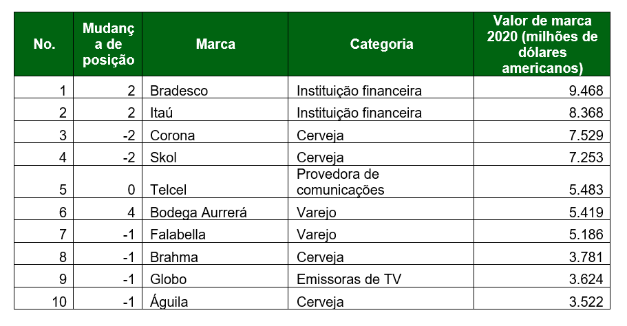 Top 10 BrandZ das Marcas Mais Valiosas da América Latina em 2020