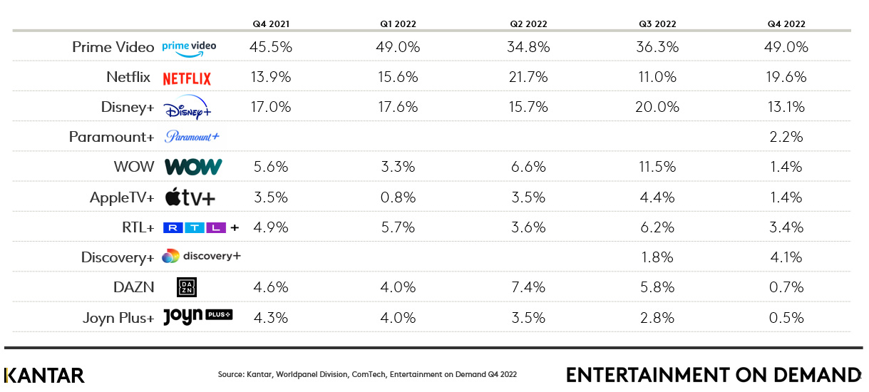 Prime Video führt den Zuwachs in den deutschen SVoD-Haushalte an