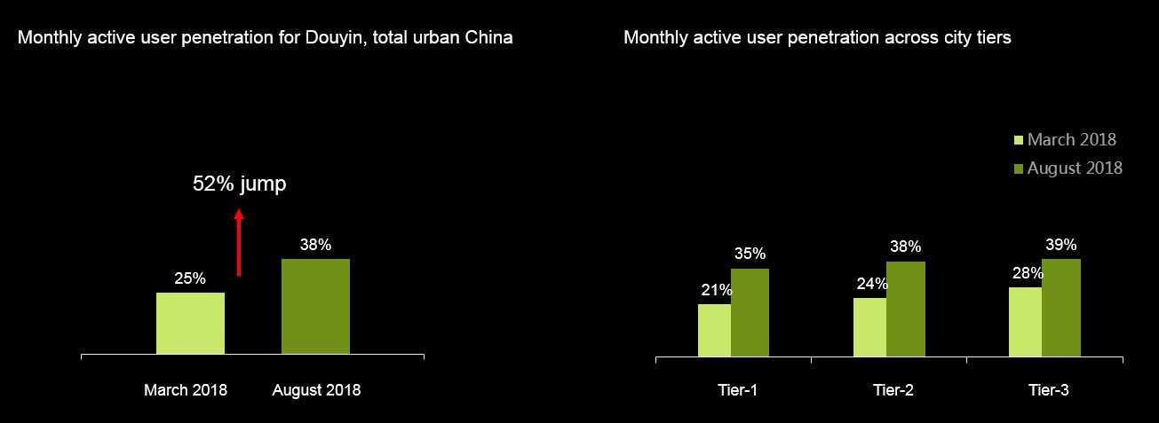 (Monthly active user penetration for short video app Douyin (known overseas as Tik Tok))