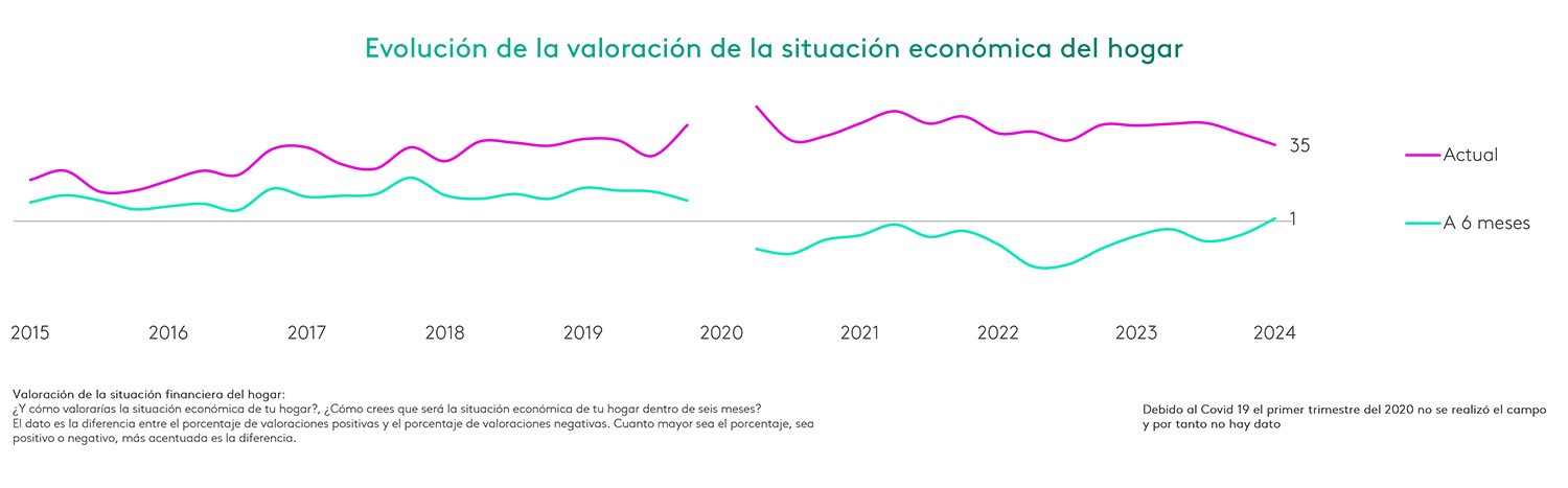 Esta visión está impulsada por la percepción de que España ha presentado una mejor evolución económica que la media de la zona euro, por el periodo actual de desinflación y por el control del precio de la energía. A pesar de ello, los focos de incertidumbre como los conflictos bélicos en Gaza y Ucrania, hacen que las expectativas de mejora de los consumidores presenten cierta cautela.