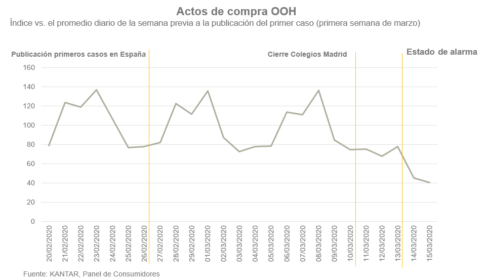 En lo que se refiere al consumo fuera del hogar (OOH, por sus siglas en inglés), los consumidores españoles sólo lo redujeron cuando fueron “obligados” por el cierre de locales, lo que hace previsible una recuperación rápida al terminar el confinamiento.