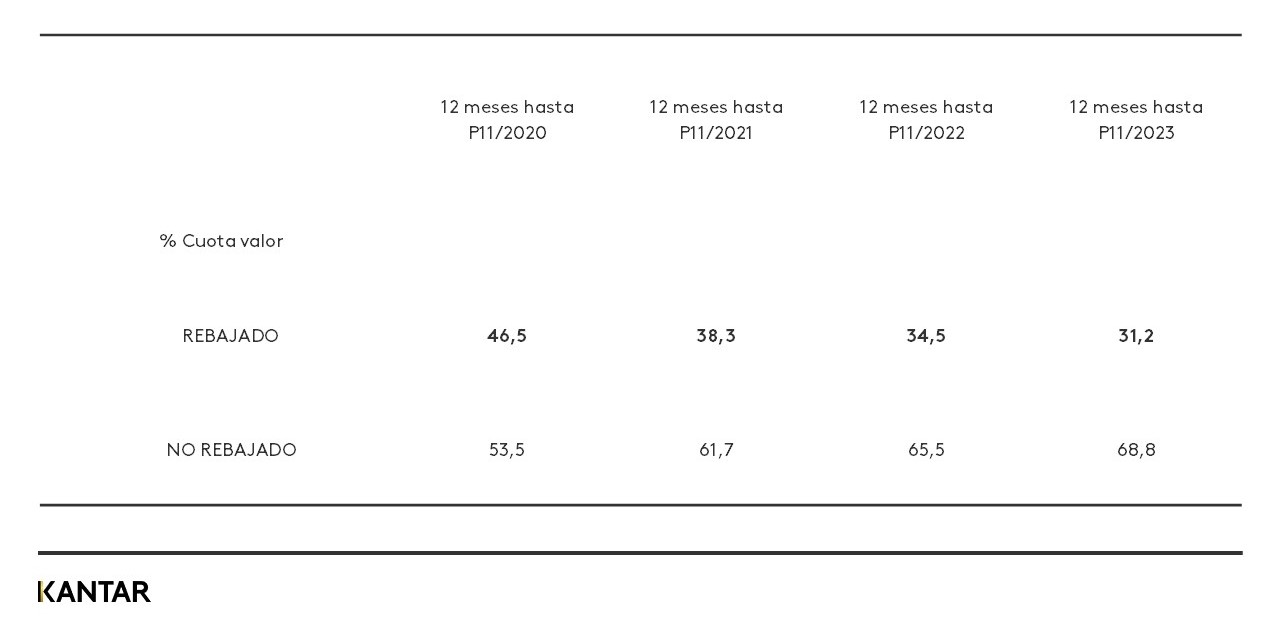 A pesar de ello, durante los últimos años comprar con algún tipo de rebajas parece estar siendo menos atractivo para los consumidores, pues cada vez se adquieren menos prendas bajo este reclamo de precios bajos.