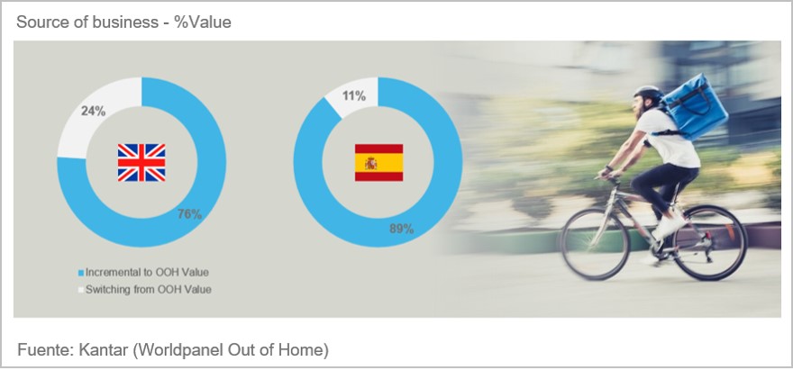 La comida a domicilio es la responsable del crecimiento de la Restauración en los hogares, ya que a través de agregadores como Just Eat, Glovo o Deliveroo ha logrado posicionarse como alternativa a cocinar en casa, y no como sustituto del restaurante, y ya alcanza los casi tres millones de compradores, en lo que va de año.