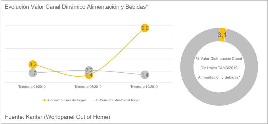 Entre la oferta disponible destaca la comida lista para consumir. La categoría ha experimentado muchos cambios y, en los últimos años, han irrumpido con fuerza las principales cadenas de supermercados, alcanzando un crecimiento del 10% en el consumo fuera del hogar en el tercer trimestre del año (gráfico 1).