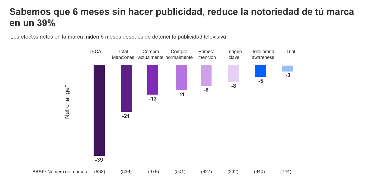 Así, cuando se deja de hacer publicidad se pierde relevancia y la notoriedad de la marca puede caer hasta un 39% en 6 meses.