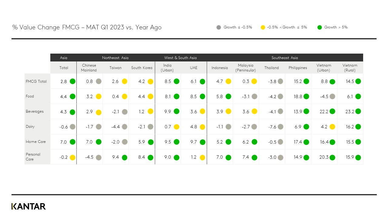 The Asia-Pacific region’s FMCG industry continues to evolve in a highly dynamic fashion. The latest Asia Pulse report for Q1 2023, published by Kantar Asia’s Worldpanel Division, paints a vivid picture of the multitude of trends and developments that have shaped consumer behaviour and market forces across various countries.