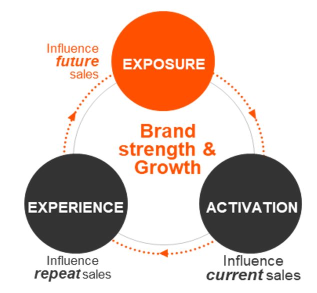 Le analisi svolte sui database Kantar ci confermano che delle tre aree di marketing che determinano il successo di una marca sul mercato, è l’area dell’Exposure a sostenerne in modo più diretto la crescita di un brand (figura 2).