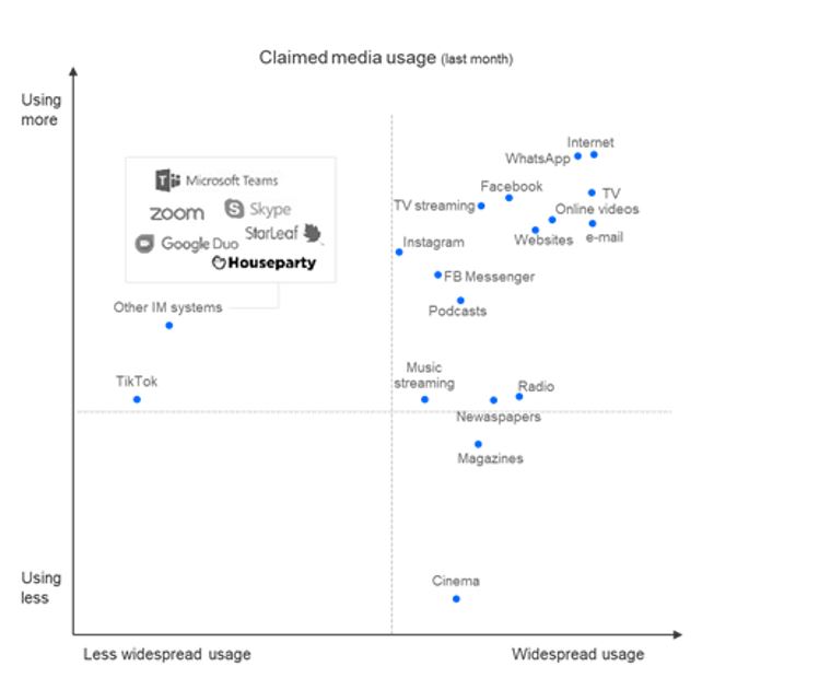 La TV in tutte le sue forme – lineare, on demand, cTV – ha registrato aumenti significativi in termini di audience e di tempo medio, raggiungendo target che da molto tempo era difficile trovare davanti allo schermo. Il digitale ha registrato tassi di crescita ancora più importanti: il tempo trascorso dagli italiani su internet è aumentato improvvisamente facendo emergere e consolidando nuove piattaforme e modalità di interazione. Proprio in questo periodo, mentre la sospensione dei grandi eventi live ha dato un duro colpo al mondo delle sponsorizzazioni, abbiamo assistito al concerto-evento con il più alto numero di persone collegate live mai registrato: oltre 12 milioni di persone riunite virtualmente all’interno dell’online game Fortnite.
