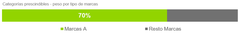Las Primeras Marcas son las mayores responsables del gasto generado dentro del grupo de las Prescindibles, y es sobre las cuales los hogares tendieron a recortar mayor presupuesto el último tiempo.