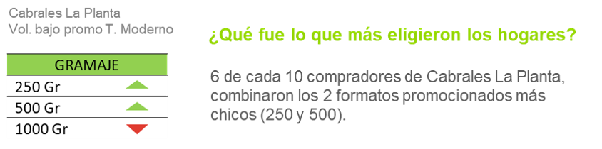 Desarrolló la promoción apuntando a un menor out of pocket impulsando los empaques de 250grs y 500grs.Esta estrategia le permitió generar affordability y ubicarse en una posición competitiva frente a las marcas de menor precio.