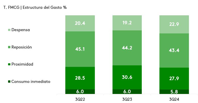 Asimismo, nos encontramos frente a un consumidor peruano más estratégico y planificado en su consumo La mayor planificación está generando un cambio estructural en las misiones de compra, donde las compras de despensa (de 10 a más categorías compradas por viaje) continúan ganando espacio dentro del gasto de los hogares peruanos, lo que refleja una oportunidad para las marcas en maximizar la ocasión de compra y seguir ganando mayor presencia.