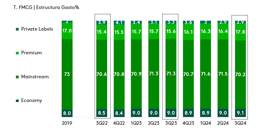 En el corto plazo observamos que los mejores resultados del país llevan a los hogares a optar por productos con formatos más grandes. Sin embargo, el comportamiento de compra sigue siendo estratégico, ya que muchas familias continúan defendiendo sus marcas habituales en formatos pequeños, medianos y a granel.