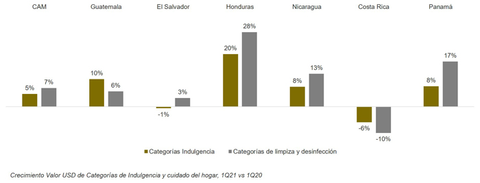 Otra de las causas del aumento en el gasto en el hogar, es la tendencia a comprar productos de limpieza y desinfección, 85% de centroamericanos pasaron su tiempo libre en la cuarentena aseando su casa, por lo que la adquisición de estos productos incrementó un 7% en el primer trimestre de 2021 versus el mismo periodo del año anterior.