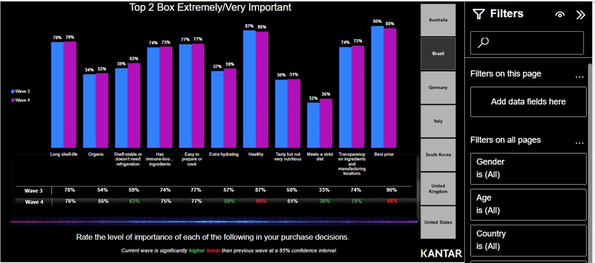 The Profiles team at Kantar offers custom dashboards to present data interactively and visually, making it easier for users to analyze key metrics.