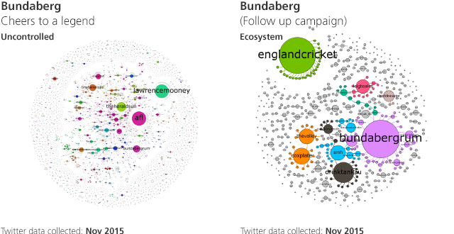 By mapping the communities and conversations that naturally form in the social media space, marketers can identify the issues that motivate and resonate with their target audiences. Finding meaningful, relevant and authentic roles for their brands regarding these issues is a far more effective starting point for planning campaigns that can connect both on social media and beyond. This is what Bundaberg Rum did in response to the initial lack of excitement around its ‘Cheers to a Legend’ campaign, identifying the sporting communities that it needed to connect with, and planning its approach far more carefully around doing so. Later executions focused on carefully selected sportsmen generated both a greater volume of Twitter conversation – and more genuine engagement with Twitter communities. Influencer marketing has a role to play in such strategies, when it is able to bring out the role and relevance of the brand for the different communities in the Influencer’s network.