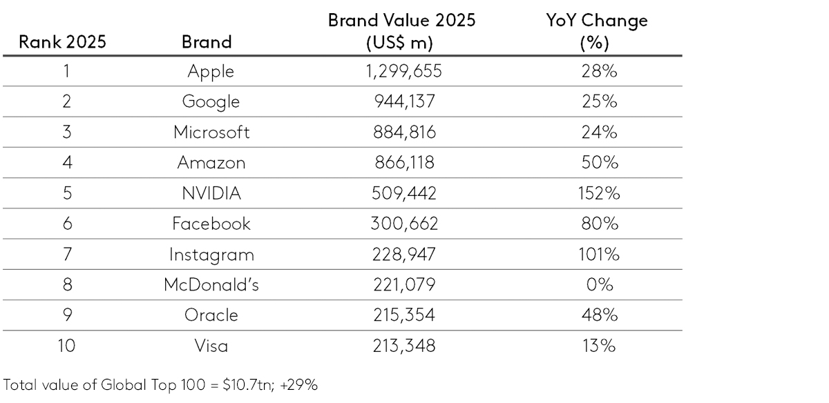 Kantar BrandZ Top 10 Most Valuable Global Brands 2025
