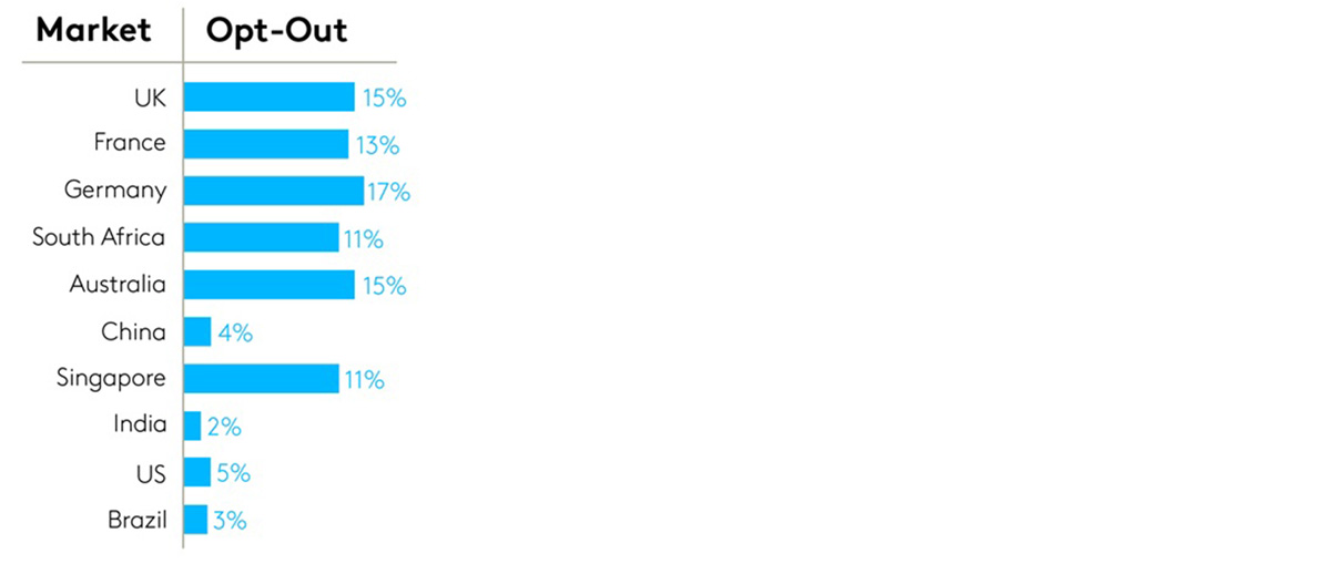There were differences across markets as well with the highest opt-out rates occurring in Germany (17%), the U.K. (15%), and Australia (15%):