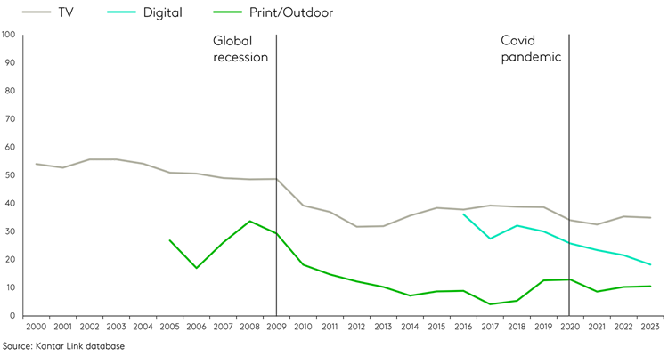 Just over a year ago, we talked about the steady overall decline of humour in advertising over the last two decades. The good news is that Kantar data from 2022 saw a slight return in the use of humour, which remains steady so far in 2023. We also note that humour has been a consistent theme of our Kantar Creative Effectiveness Awards winners, which are judged by consumers, but it was also a big topic this year at Cannes Lions, where experts are the judges. In previous years Lions were more often awarded to serious heart-felt advertising than funny ads.