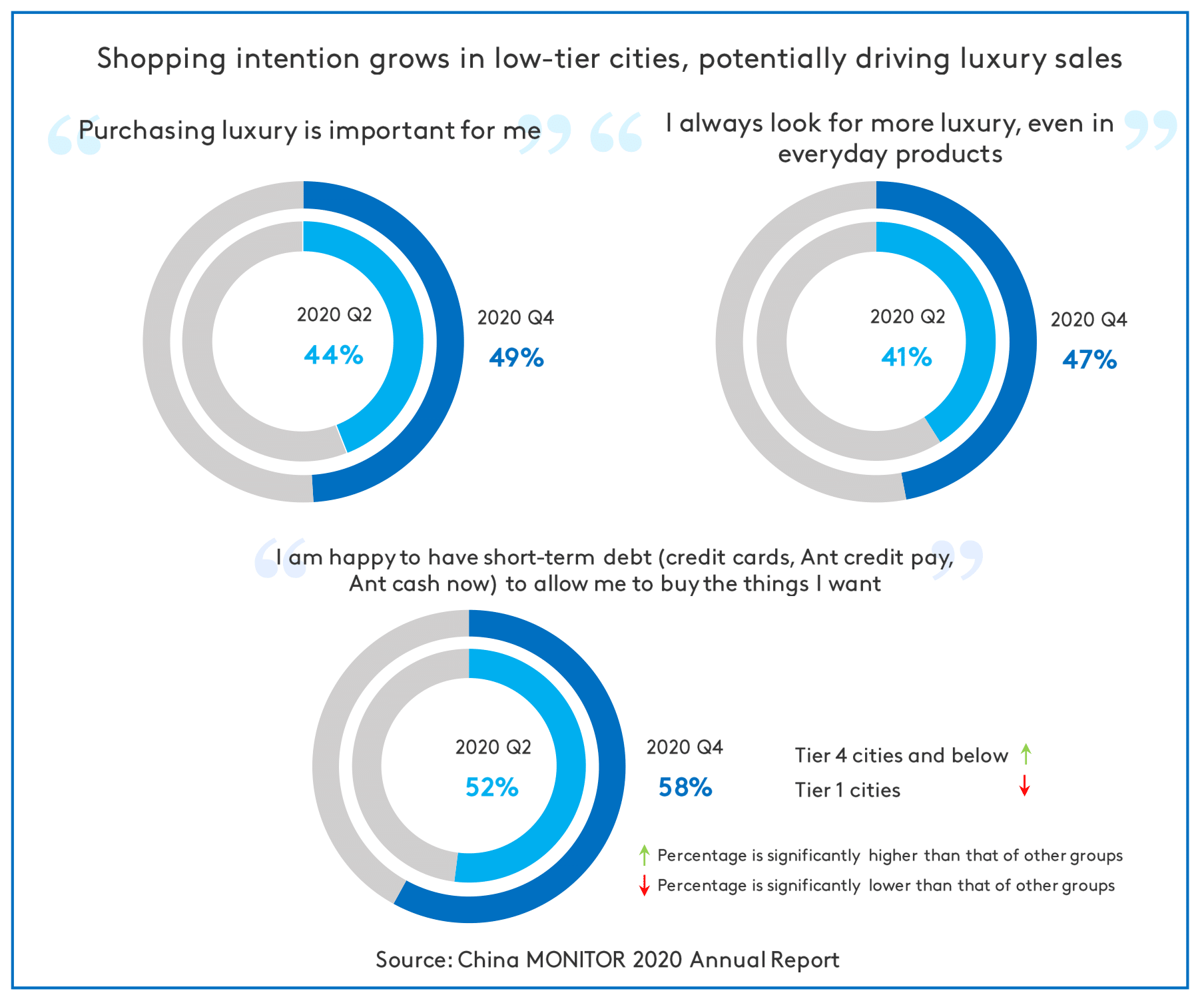 1. Shopping intention grows in low-tier cities, potentially driving luxury sales