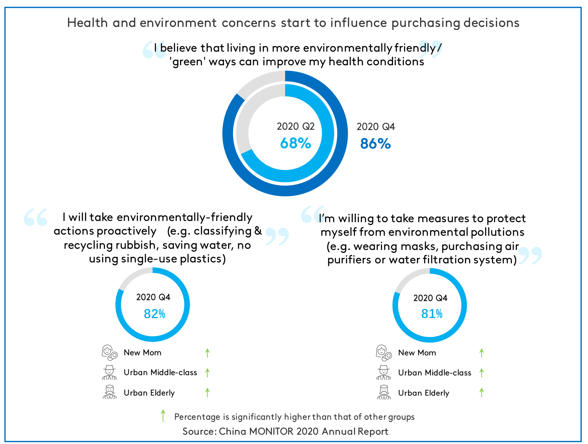COVID-19 has largely increased Chinese consumers’ attention to health, and created a fresh wave of “new well-being theories”, such as “punk wellness” from young people, “spiritual healing” from the avant-garde middle-class. There are also numerous new apps helping people to track their movements and diet. Besides, Chinese have a real preference of environmentally friendly product to keep their life safe and healthy, and expect brands to take on their due social responsibilities.