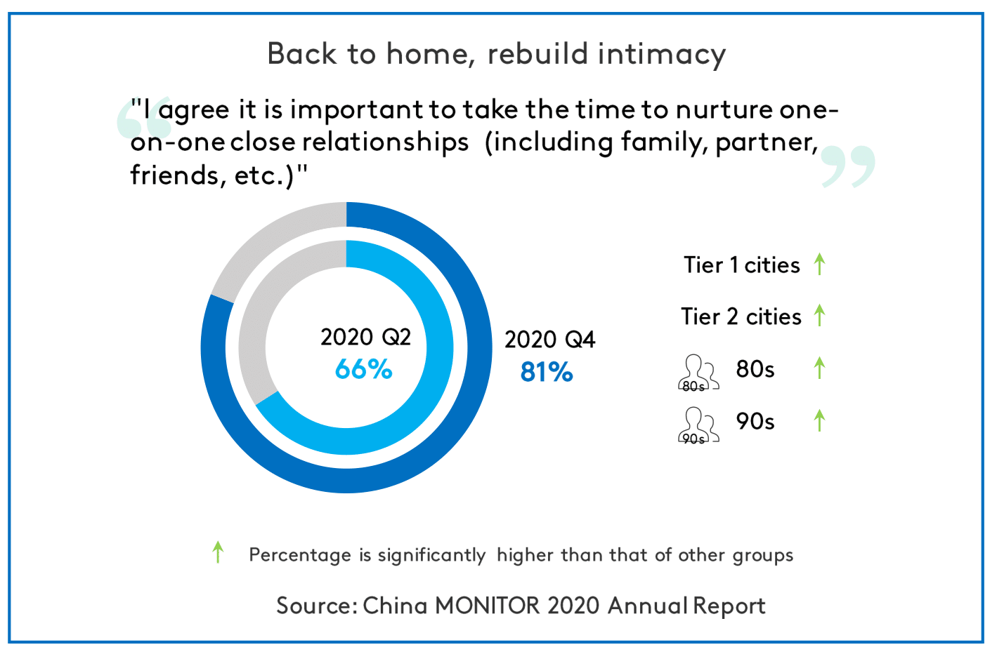 During the lockdown period, people had to stay with family members at home and spend more time together. People kept their appreciation for these “quality time” even after China lifted its lockdown across the country. When at home, people can feel the warmth and healing power of family life, from small chats over dinner table to spending time with children. Brands, if relevant, should develop products/services fit for family scenarios to bring family members even closer and enjoy their intimate relationship.