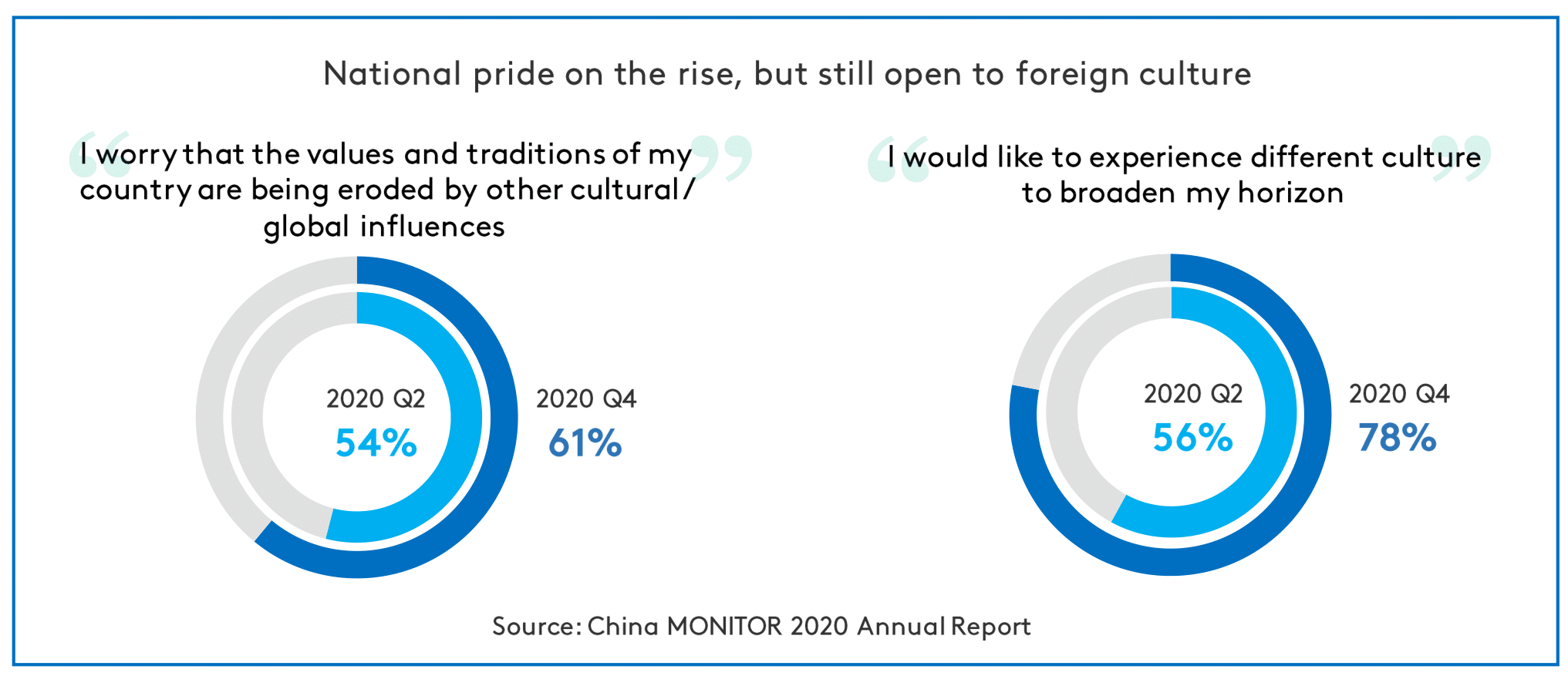 Chinese showed great solidarity and perseverance during the pandemic. The outstanding result has created a new wave of national pride in being a Chinese. Against this backdrop, Chinese brands, time-honoured and start-up brands alike, are also winning more local consumers with their first-class quality, design and other advantages. But the rise of local brands doesn’t necessarily mean the end of Chinese’s curiosity and openness to foreign culture. They have become more sophisticated and will look at foreign culture and brands through various perspectives to learn how to best understand them. Culture element is still one of the most important ingredients to decide a brand’s equity.