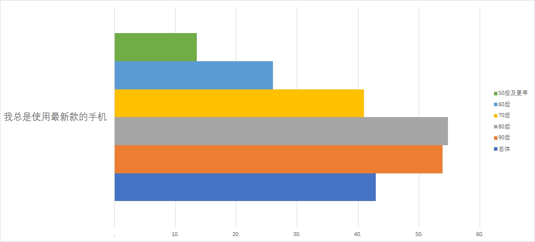 比如手机方面: “我总是使用最新款的手机”, “我会考虑付费购买在我手机上使用的内容,比如音乐和视频”