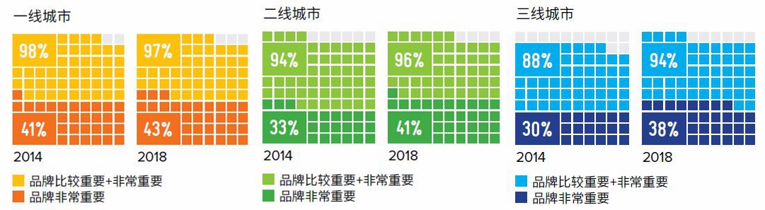 * 为了追求更多的机会,中国生产商正在转移到成本较低的地区,这些地区虽然不在北京、上海和广州等“特大城市”,但合计有超过10亿人口。在主要城市之外,品牌价值也开始变得日趋重要,目前三线城市中94%的人认为品牌至关重要,2014年时该项调查的数字仅为88%。